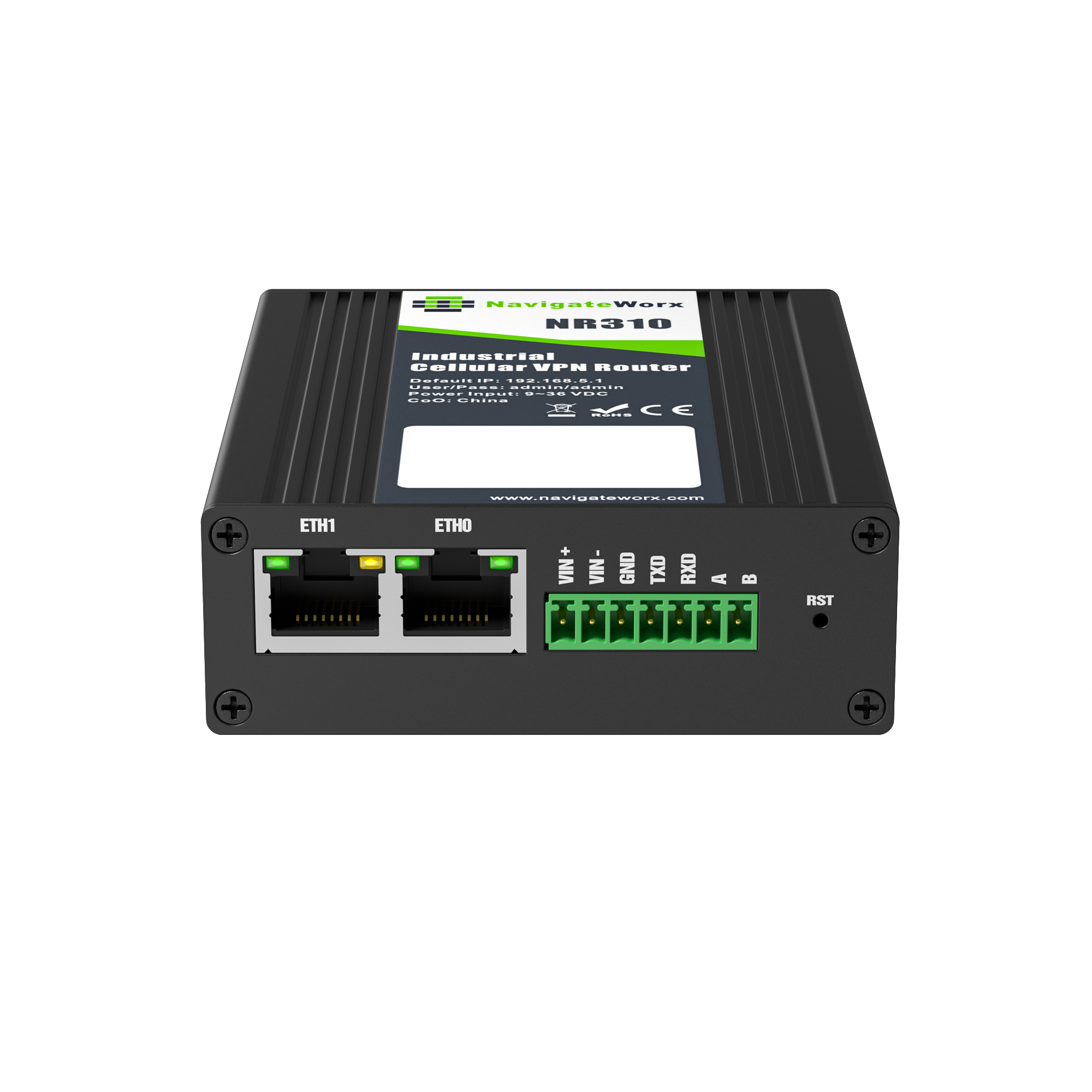 | Navigateworx Router | Terminal block for power supply & serial | Ethernet Cable |