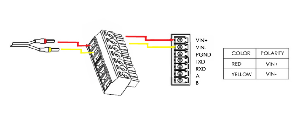 Connect the wires of the power supply to the terminals.