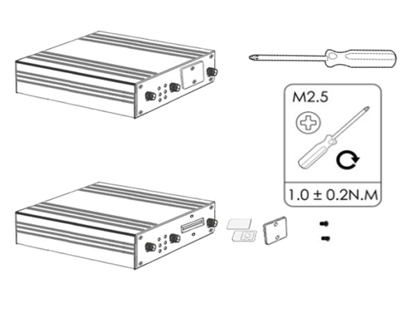 Use a phillips-head screwdriver to remove the SIM slot cover. Insert the SIM card(s) into the SIM sockets. Replace the SIM slot cover. |
