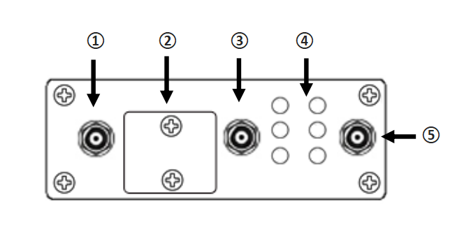 1 - WiFi Antenna 2 - SIM Card Slot 3 - Cellular Antenna(MAIN) 4 - LEDs Indicator 5 - Cellular Antenna(AUX) |