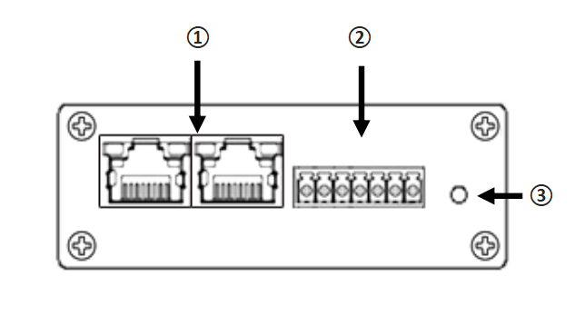 1 - Ethernet port 2 - Power Connector & Serial port 3 - Reset Button |