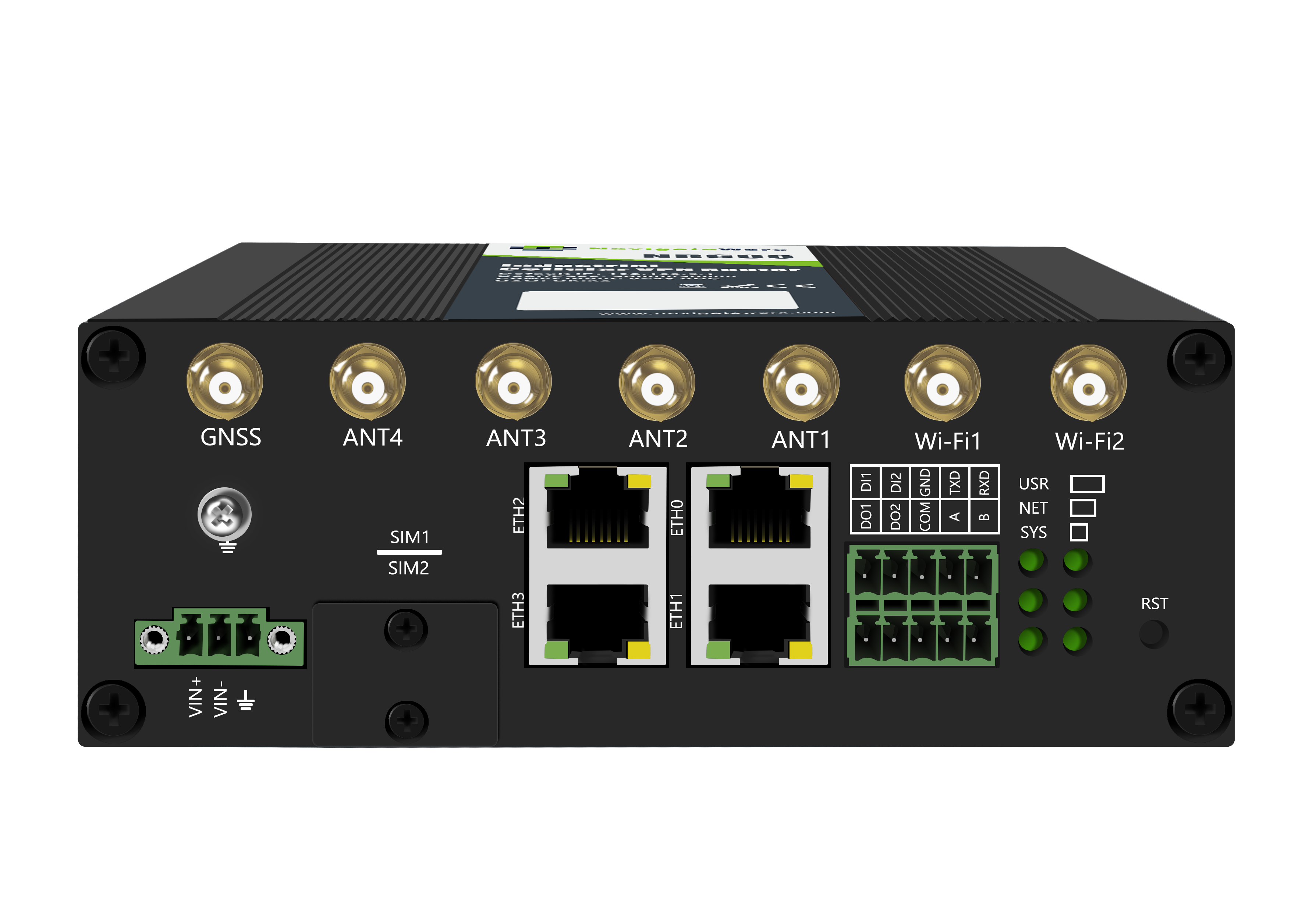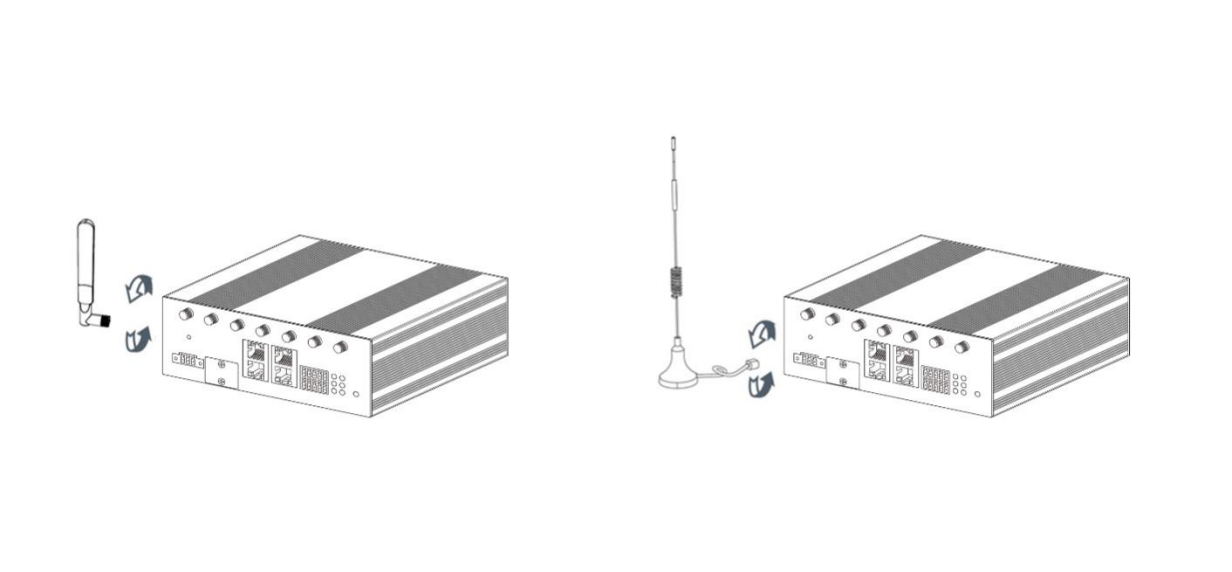 | Power adapter | Cellular antenna (x4) | Cellular antenna(x4) | Wi-Fi antenna (x2) | Wi-Fi antenna(x2) | GPS antenna(x1) | DIN rail mounting kit |