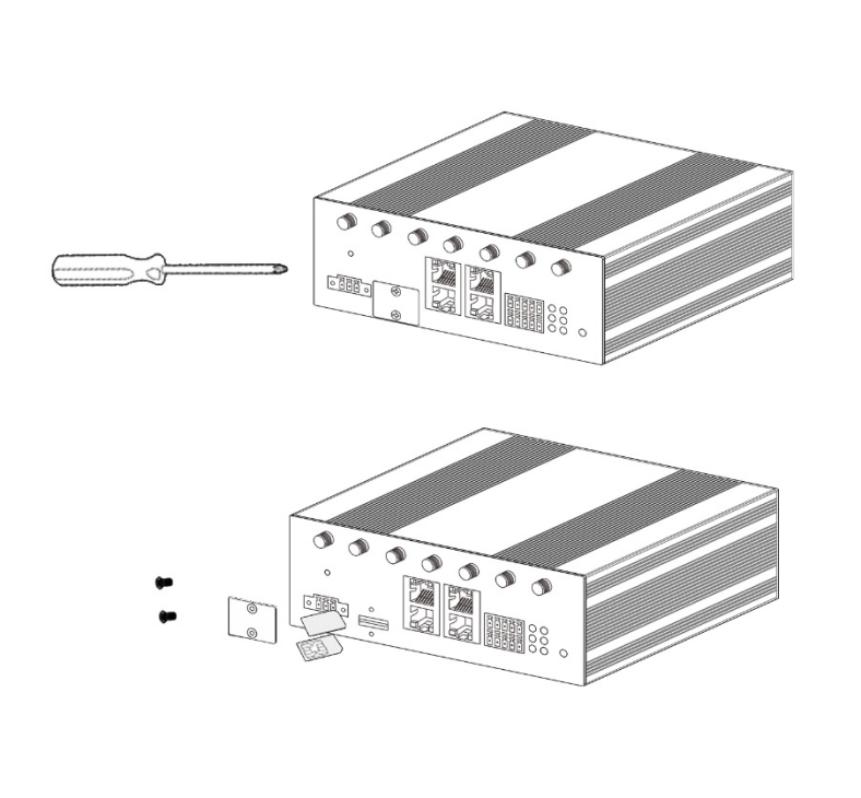 Use a phillips-head screwdriver to remove the SIM slot cover. Insert the SIM card(s) into the SIM sockets. Replace the SIM slot cover. |