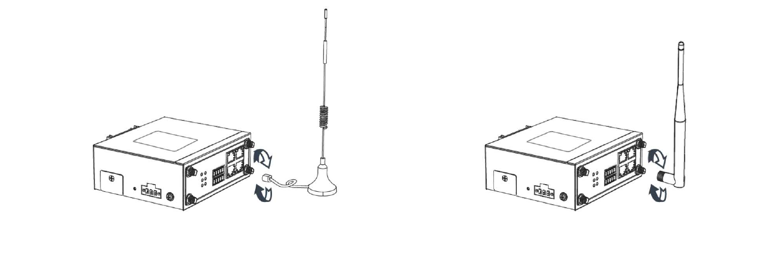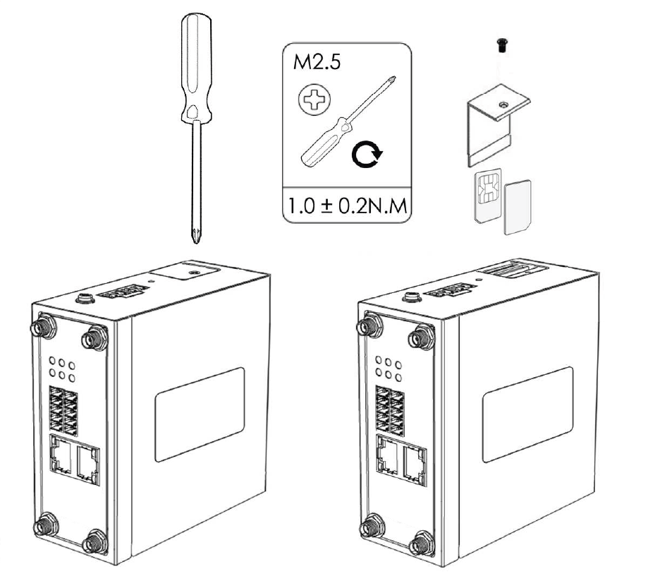 | Power adapter | Cellular antenna (x2) | Cellular antenna(x2) | Wi-Fi antenna (x2) | Wi-Fi antenna(x2) | DIN rail mounting kit |