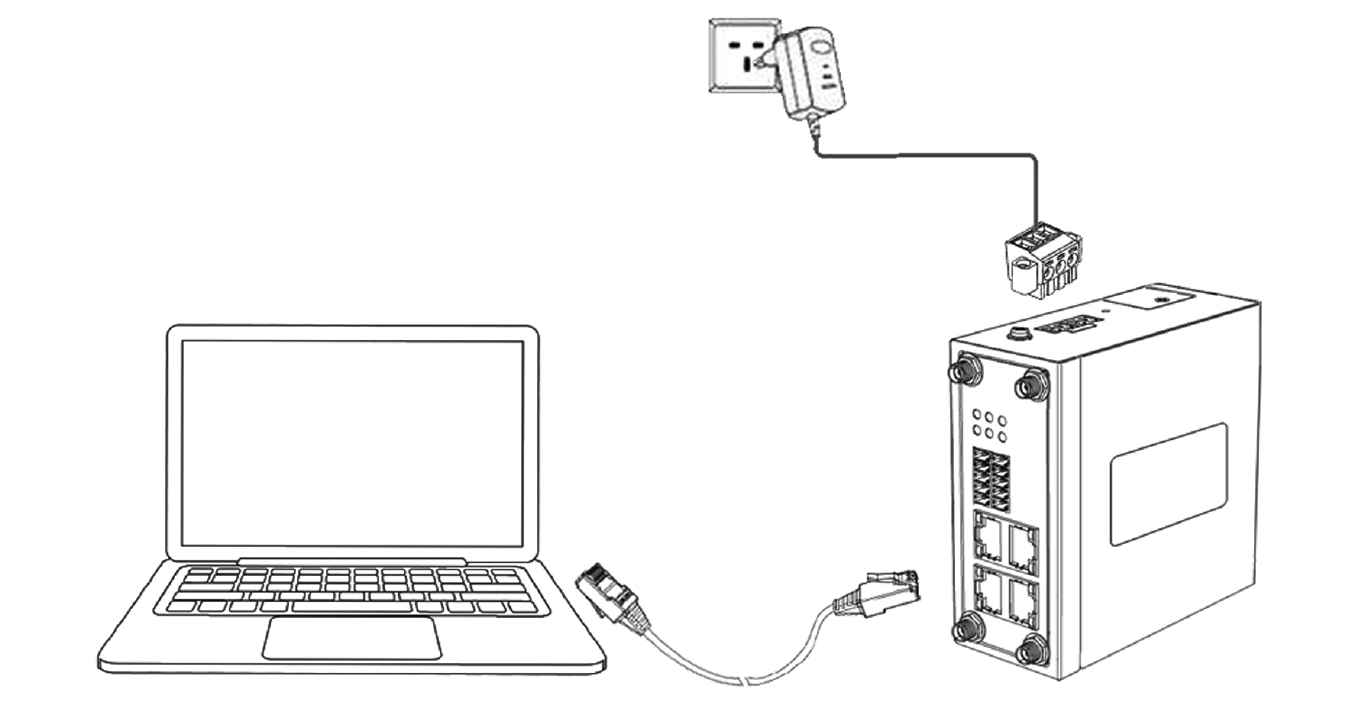 | Navigateworx Router | Terminal block for power supply | Terminal block for serial/DIDO | Ethernet Cable |