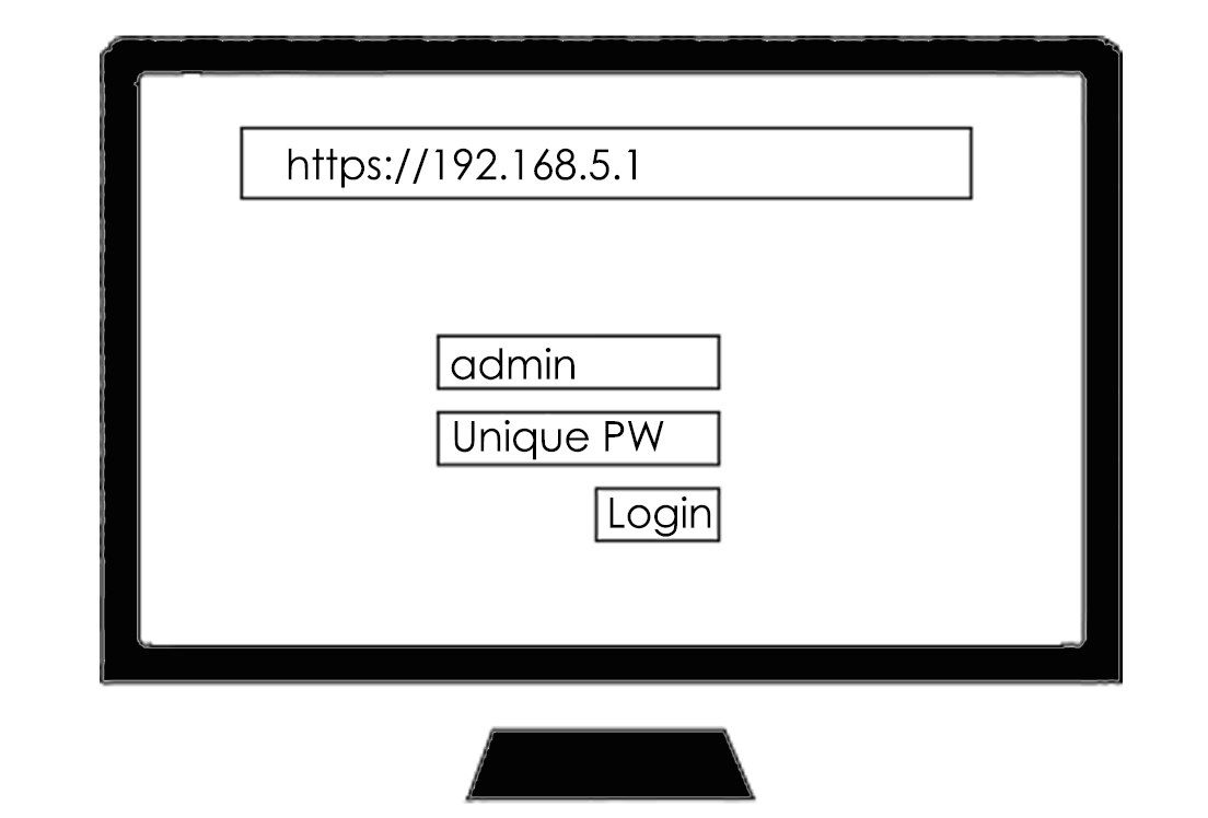 | Enter https://192.168.5.1 into the address of the web broswer. Use <admin> as username and unique password located on the product label. | ![]() |