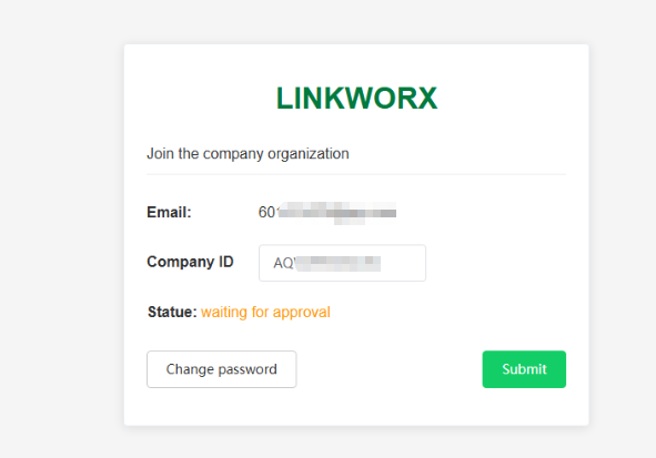 | Fill the email address and password and submit. | Re-login with your account and fill the company ID then submit. | Wait for the Organizaion Admin to approve your submission. | ||