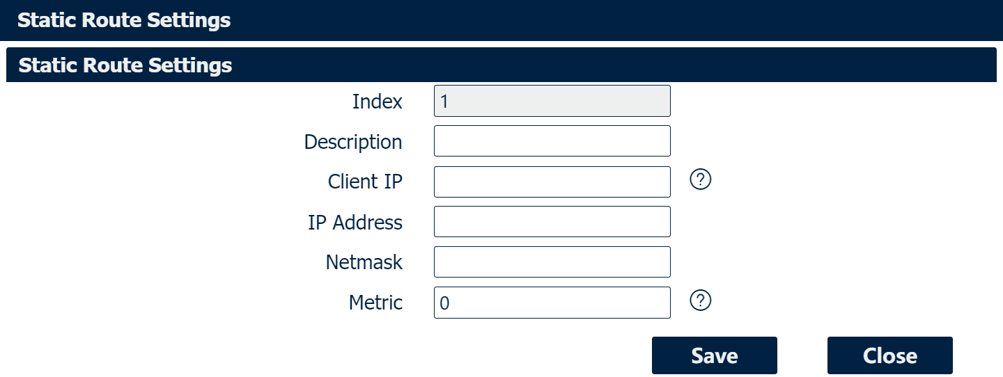 Enter the Metric for this static route. |