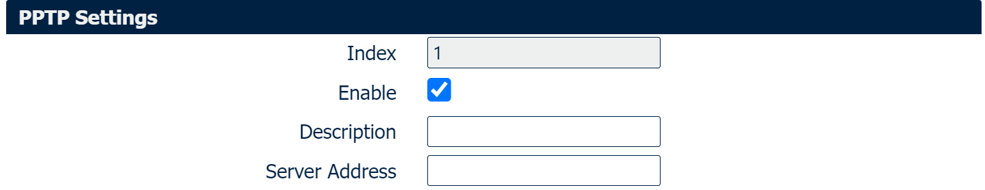 Enter PPTP Server address. |
